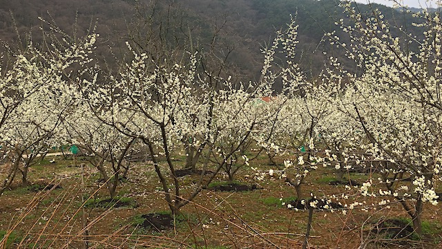 3월 25일에 매화가 피었을 때의 과수원의 모습